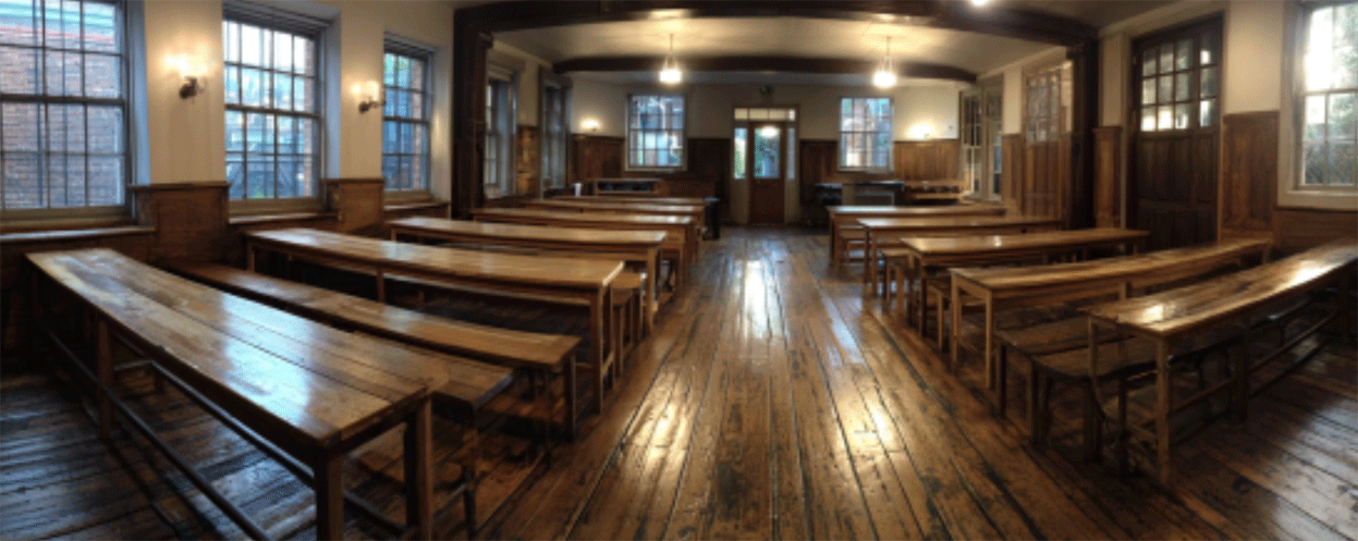 Langsam nähere ich mich der Tür. Meine Hand zögert einen Moment, bevor ich den Knauf ergreife. Die Tür fühlt sich kühl an, fast als würde sie mich gleichzeitig einladen und warnen. Mit einem tiefen Atemzug öffne ich sie und trete in einen großen Raum ein, dessen Größe mich zunächst überrascht. Es fühlt sich an, als hätte ich einen verborgenen Teil meines Inneren betreten, einen Raum, der gleichzeitig fremd und vertraut ist. Der Raum gleicht einem alten Klassenzimmer, ausgestattet mit alten Bänken, die Geschichten vergangener Generationen zu flüstern scheinen. Es ist eine merkwürdige Mischung aus Alt und Neu hier – die Bänke sind alt, doch die Tische sind neu, glänzend und unberührt. Diese Diskrepanz verwirrt mich, lässt mich jedoch auch tiefer in diesen Raum meines Unterbewusstseins eintauchen. Ich stehe allein in diesem Raum, umgeben von der Stille, die nur von meinem eigenen Atem unterbrochen wird. Es ist merkwürdig beruhigend hier, trotz der spürbaren Spannung, die in der Luft liegt. Ich spüre keine Angst, nur eine tiefe Neugier, was dieser Raum mir über mich selbst erzählen will. Plötzlich bemerke ich, dass ich nicht allein bin. Vor mir steht ein Mann, seine Hände auf dem Rücken verschränkt, als würde er auf etwas warten. Er scheint mir vertraut, fast als wäre er ein Teil von mir, den ich lange ignoriert habe. Ein innerer Helfer, der geduldig auf den Moment gewartet hat, in dem ich bereit bin, ihn anzuhören. Ich frage mich, was er mir zeigen möchte. Folge ihm durch den Raum, durch die Tür hinaus, zurück in den Gang, der nun nicht mehr nur ein Gang ist, sondern ein Pfad zu Erinnerungen und Einsichten. Doch ich sehe nichts Konkretes, nur die vagen Umrisse dessen, was sein könnte oder einmal war. Meine Gedanken wandern zur Turnhalle meiner Kindheit, einem Ort der Freude, des Lachens und der Träume. Ein Ort, an dem ich mich stark und unbesiegbar fühlte. Ich sehe mich dort als Kind, voller Energie und Tatendrang. Doch zugleich spüre ich eine Melancholie, eine Sehnsucht nach einer Zeit, die längst vergangen ist. Ich spreche mit diesem jüngeren Ich, versuche Verbindung aufzunehmen, doch es fühlt sich an, als wäre zwischen uns eine unsichtbare Barriere. Trotzdem spüre ich eine tiefe Verbundenheit, ein Verständnis ohne Worte. Es ist, als hätte ich einen verlorenen Teil von mir wiedergefunden, einen Teil, der mir Kraft und Mut gibt. Diese innere Reise führt mich zu der Erkenntnis, dass ich viele Facetten habe, einige vertraut und andere noch unentdeckt. Jeder Raum, jede Begegnung in meinem Inneren zeigt mir einen neuen Aspekt meiner selbst. Es ist ein ständiges Entdecken, ein Prozess, der nie abgeschlossen ist. Ich erkenne, dass meine emotionale Landschaft reich und vielschichtig ist. Dass Angst und Freude, Vergangenheit und Gegenwart, Schmerz und Glück nebeneinander existieren können. Dass ich stark und verletzlich zugleich bin. Und dass es in Ordnung ist, nicht immer Antworten zu haben, sondern einfach nur zu sein, zu fühlen und zu erkunden. Mit einem tiefen Atemzug verlasse ich den Raum, den Gang, kehre zurück in die Realität. Doch ich fühle mich verändert, als hätte diese Reise etwas in mir gelöst, mir neue Perspektiven eröffnet. Ich bin bereit, meinen Weg weiterzugehen, mit einer neuen Offenheit für alles, was das Leben mir zu bieten hat.