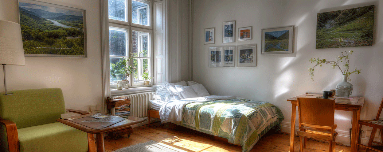 Mit einem tiefen Atemzug öffne ich die Tür und trete in ein kleines Zimmer ein. Es wirkt vertraut und doch fremd zugleich. Ein helles Fenster durchflutet den Raum mit Licht, und ein Bett neben einer Liege erweckt das Bedürfnis in mir, mich hinzulegen und auszuruhen. Ein Tisch und ein Stuhl stehen an der Wand, ordentlich und einladend. Als ich mich umschaue, fallen mir Bilder an den Wänden auf – Fotografien von Landschaften, die ich kenne, weil ich sie schon einmal gesehen habe. Es sind Erinnerungen aus meinem Leben, die hier, in diesem Raum, eine neue Bedeutung erlangen. Die Landschaften auf den Bildern sind mir vertraut, weil ich sie selbst besucht habe. Diese Verbindung zu meiner Vergangenheit lässt mich innehalten. Plötzlich verstehe ich, dass dieser Raum, den ich nie zuvor gesehen habe, auf einer symbolischen Ebene existiert. Er repräsentiert Ausschnitte meines Lebens, Momente, die meine Seele mir zu zeigen versucht. Während ich weiter den Raum erkunde, finde ich nichts Ungewöhnliches. Alles scheint normal, fast zu normal. Als ich mich frage, wie ich mich in diesem Zimmer fühle, wird mir bewusst, dass ich mich allein fühle. Ich mag das Alleinsein nicht, es erinnert mich an die Nächte, in denen ich wach liege, unfähig zu schlafen. Ich beschließe, den Raum nach einer Botschaft zu fragen. "Hier ist keiner. Hier bist nur du alleine. Du musst mit dir selbst zurechtkommen." Diese Worte hallen in meinem Kopf wider. Sie lassen mich über die Verbindung zwischen meinem Alleinsein und meinen Schlafstörungen nachdenken. Doch ich spüre, dass es noch etwas Tieferes gibt, eine unentdeckte Schicht meiner Seele, die nach Aufmerksamkeit verlangt. Plötzlich taucht eine Erinnerung auf: die Jahre, in denen ich meinen Mann gepflegt habe, die Nächte, in denen ich nicht schlafen konnte. Diese Zeit hat mich geprägt, hat Stress und eine tiefe Einsamkeit hinterlassen, die ich bis heute spüre. Ich beginne zu verstehen, dass die Schlafstörungen vielleicht ein Ruf meiner Seele sind, mich mit dieser Vergangenheit auseinanderzusetzen, sie anzunehmen und vielleicht auch zu heilen. Ich stelle mir vor, wie ich zu der Erna von damals gehe, ihr sage, dass ich sie verstehe und dass es in Ordnung ist, sich Hilfe zu suchen. Ich nehme sie in den Arm, spüre den alten Schmerz und die Anspannung, die langsam nachlässt. Diese imaginäre Umarmung fühlt sich real an, als könnte sie tatsächlich heilend wirken. Die Reise durch meine Vergangenheit, die Begegnungen mit meinem jüngeren Ich und die Konfrontation mit meinen tiefsten Ängsten und Sorgen haben mir gezeigt, dass ich nicht allein bin. Ich habe Teile von mir getroffen, die ich lange ignoriert habe. Nun, da ich ihnen gegenüberstehe, spüre ich eine langsame Verschiebung in mir. Vielleicht ist dies der erste Schritt, um zu lernen, loszulassen und wieder zu schlafen.